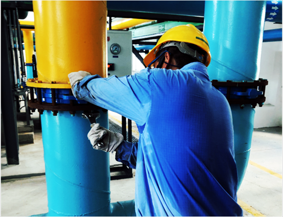 广西又到了一年中最热的季节了,室外温度近四十度,车间生产现场由于设备的持续运转和纵横交错的蒸汽管道,温度更是高达四十度以上。东升国际系统服务事业部项目经理李军带领韩永刚、王博、张震仍然坚守在工作岗位上,在蒸汽腾腾的车间现场忙碌着,各个汗流浃背,衣服如同水洗的一般,干了湿湿了干,他们正在全力检修用户的TRT机组,为保证机组早日投产默默付出着。