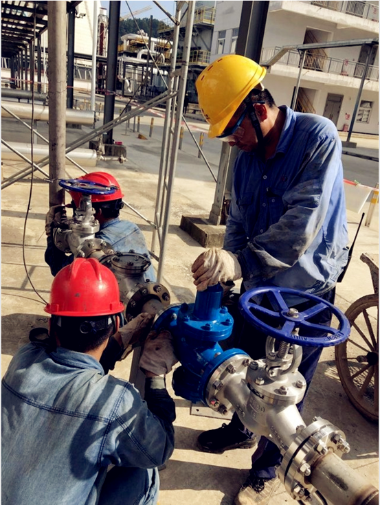8月11日上午,六安气体机械工程师牛春柱不惧室外高温,带领成员拉起施工作业警戒线、穿戴好安全防护用具就全力投入技术改造工作。大家心中只有一个目标:快速推进检修计划实施,确保不出任何纰漏。同时,电气工程师杨淮强、王刚对电气设备进行了全面检查,确保装置的安全供电和电气设备的可靠运行。在大家的努力奋战下,8月11日下午,在24小时内,所有装置全部检修完成顺利投产,开始向用户持续稳定供气,受到了用户的肯定与赞扬。