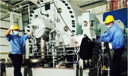 在项目现场,“秉初心,怀诚心,服务客户心连心”的理念带动了各项工作的扎实推进,机组润滑油内外循环系统调试完成、机组找正完成、主机仪表探头安装完成、变频器水冷系统调试完成······时间很快到了7月份,8套机组也已全部安装就位进入单机调试阶段。7月的沙漠地表温度超过五十度,烈日炙烤着大地,厂房里闷热得像个密不透风的罐头。东升国际项目团队成员没有丝毫犹豫和懈怠,依旧坚守在现场。头上的汗珠不断往下滴,后背也湿了一大片,很快,每个人的后背上就出现了一幅“地图”。从清晨一直到晚上,车间里总能看到东升国际人持续奋战的身影。功夫不负有心人,8月3日,长庆油田上古天然气项目第一台冷剂压缩机组实现一次试车成功,为用户按时投料生产提供了有力保障。